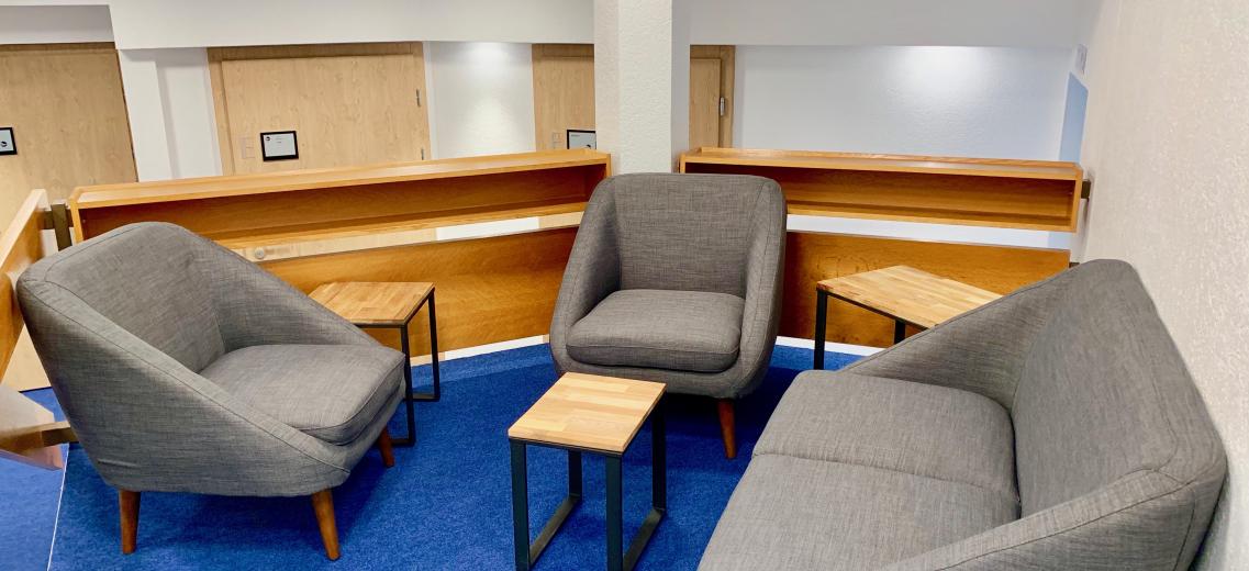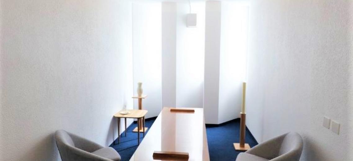 Le hall d’entrée propose un petit salon où les familles peuvent se retrouver lors de la visite à l’être aimé, ou lors de la cérémonie d’adieu.