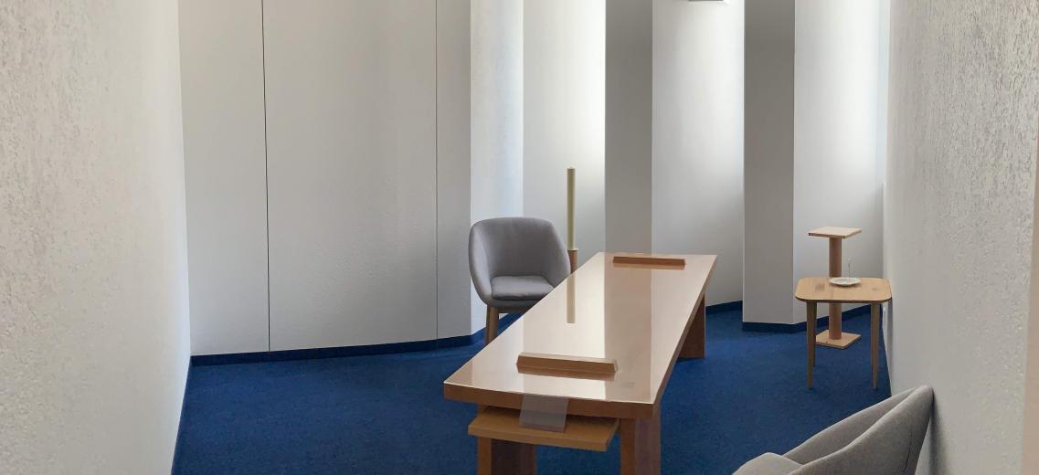 Que ce soit pour un adieu privé, dans l’intimité, ou public dans la chapelle à l’étage, accessible à tous.
